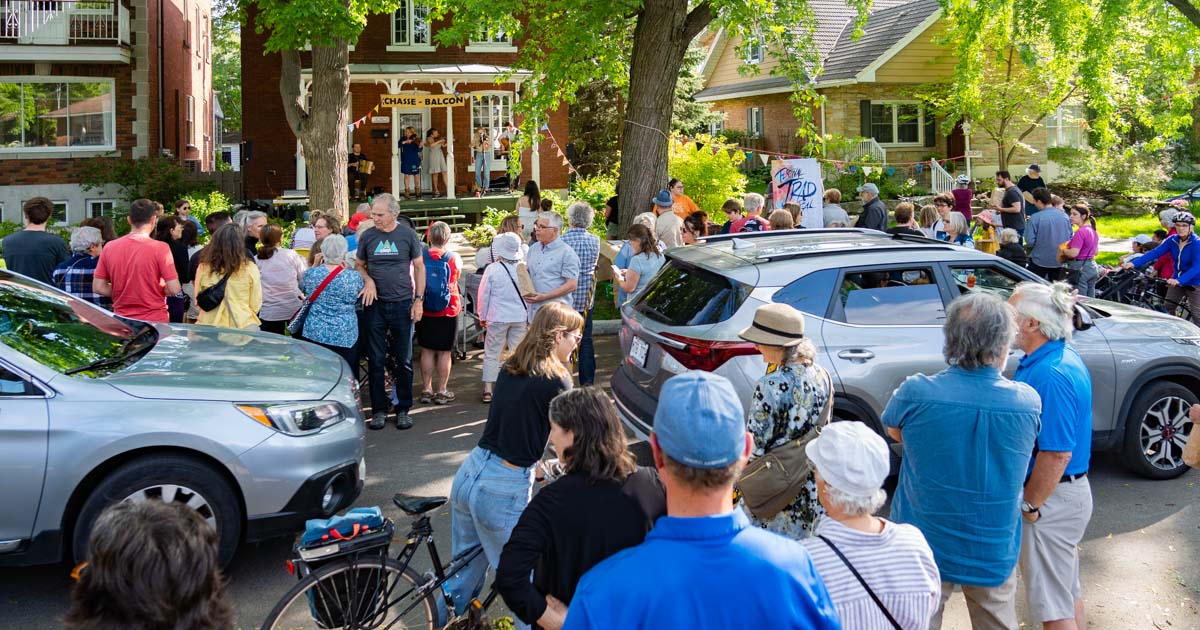 Environ 150 spectateurs assistent à la Chasse-Balcon 2023 à Ahuntsic-Cartierville. (Photo: François Robert-Durand, JDV)