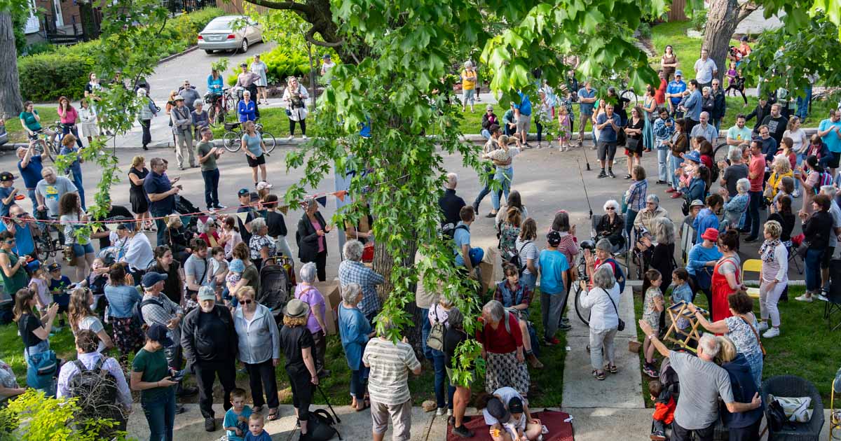 Le Journal des voisins avait annoncé la présence de cet événement musical qui s’est tenu le vendredi 26 mai . Voici un photoreportage illustrant ce qui s’est déroulé durant la visite de la Chasse-Balcon , qui a animé pendant une bonne heure le voisinage d’une rue d’Ahuntsic.