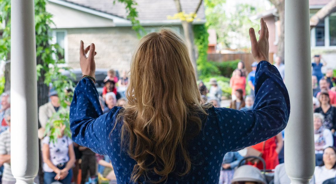 Chanteuse à la Chasse-Balcon 2023 à Ahuntsic-Cartierville. (Photo: François Robert-Durand, JDV)