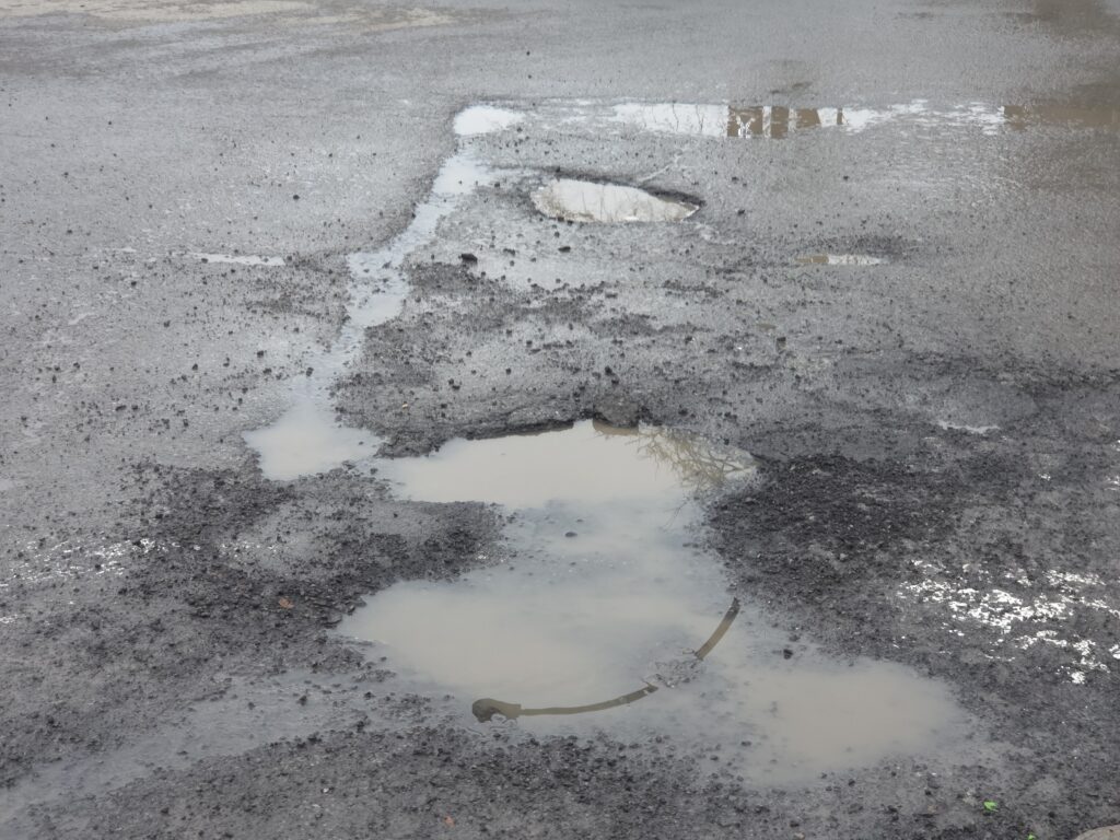 Les nids-de-poule sont la conséquence d’un cycle de gel-dégel. Une alternance de température au-dessus et en deçà de 0 oC. Cette variation de température fait que l’eau glacée s’infiltre dans les fissures des matériaux poreux, en l’occurrence les bitumes. Quand elle gèle, elle prend de l’expansion, c’est-à -dire qu’elle gonfle ce qui soulève le bitume. Lorsque le gel fond, ce dégel laisse un vide sous l’asphalte. Le trafic routier brise l’asphalte et occasionne ces nids-de-poule.