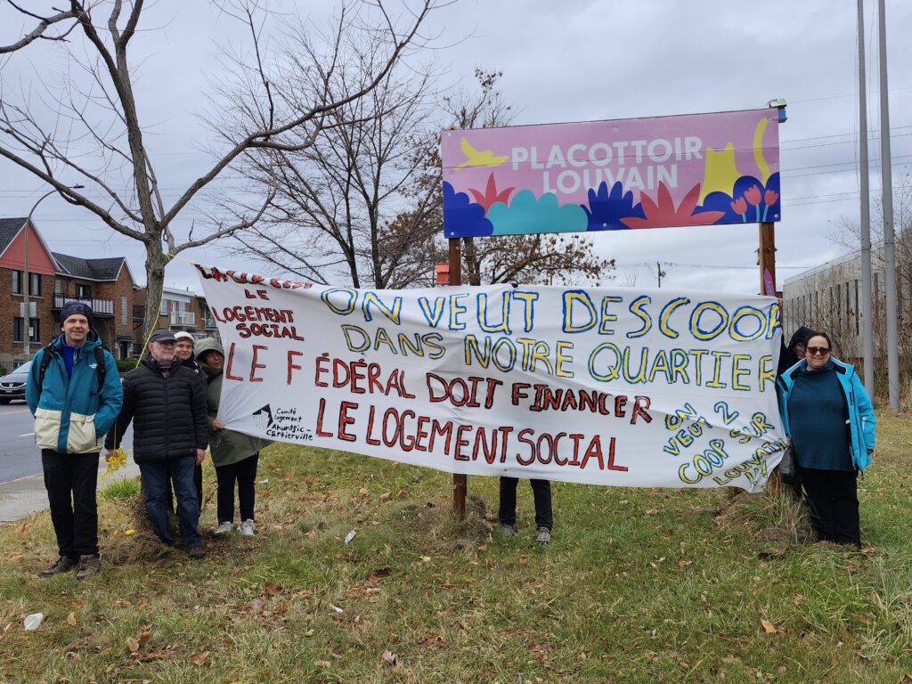 À l’occasion de la Journée canadienne de l’habitation, le vendredi 22 novembre, le Comité Logement Ahuntsic-Cartierville (CLAC) demande au gouvernement fédéral de financer deux coopératives d’habitation qui œuvreront pour la création de 170 logements au croisement des rues Louvain Est et St-Hubert en marge du développement de l’écoquartier Louvain. Une dizaine de citoyens d’Ahuntsic-Cartierville se […]
