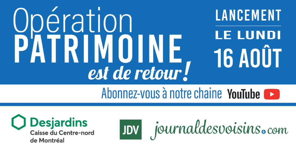 Opération Patrimoine est de retour. Et tout comme l’année dernière, Journaldesvoisins.com s’est rendu dans les quatre coins de l’arrondissement Ahuntsic-Cartierville afin de vous présenter des endroits témoins de l’histoire du territoire, en collaboration avec le guide et animateur historique, interprète du Patrimoine, Stéphane Tessier. Vingt capsules fascinantes seront lancées à partir du 16 août sur […]
