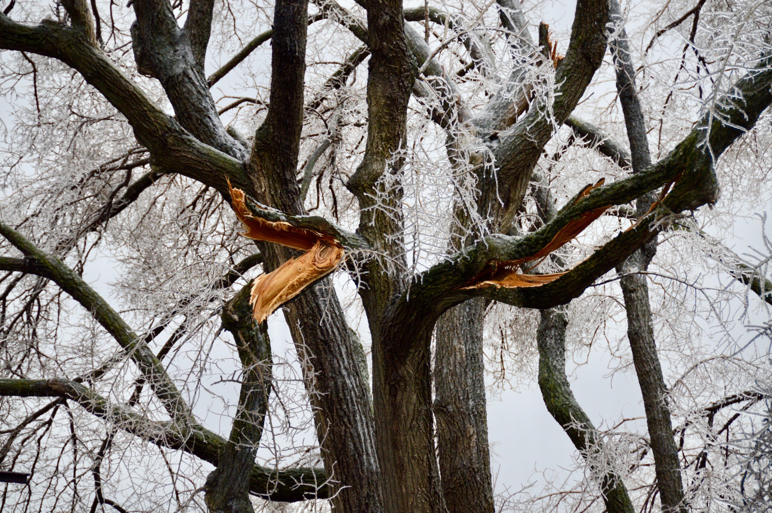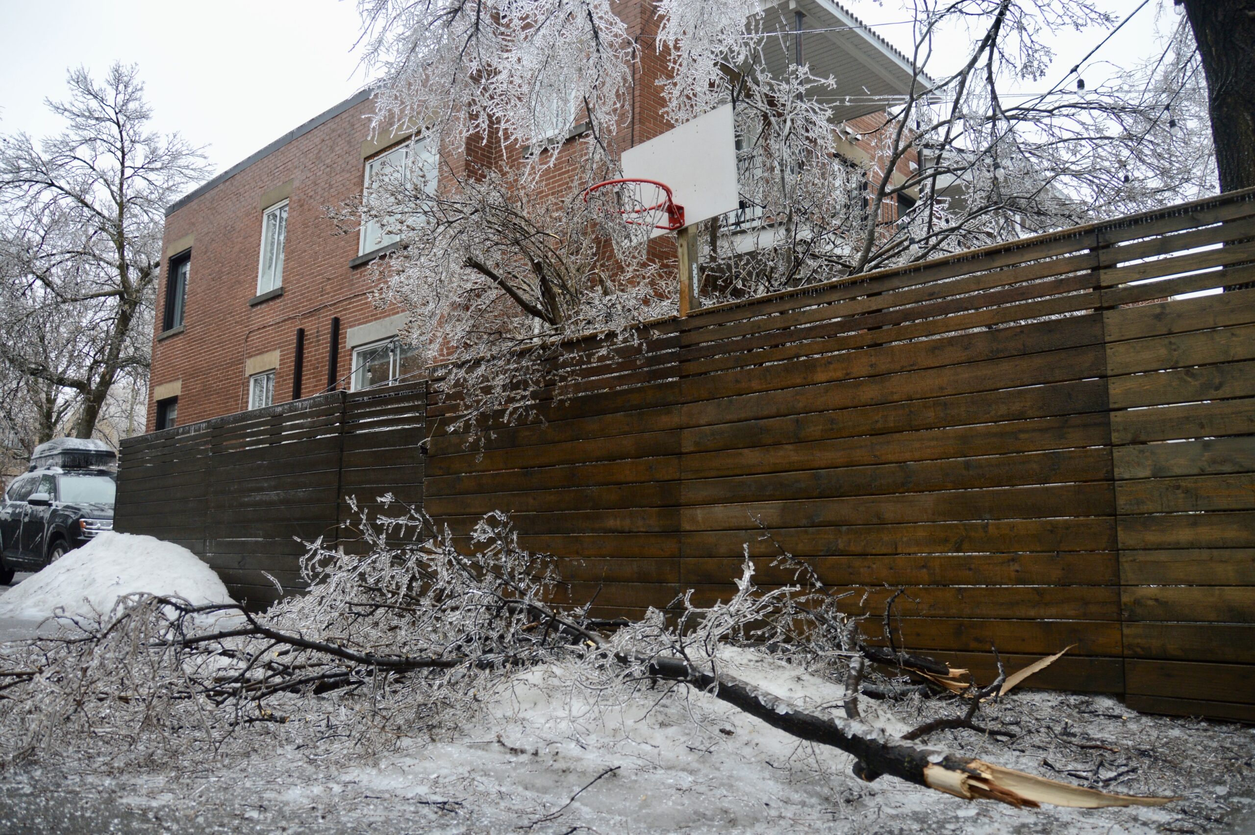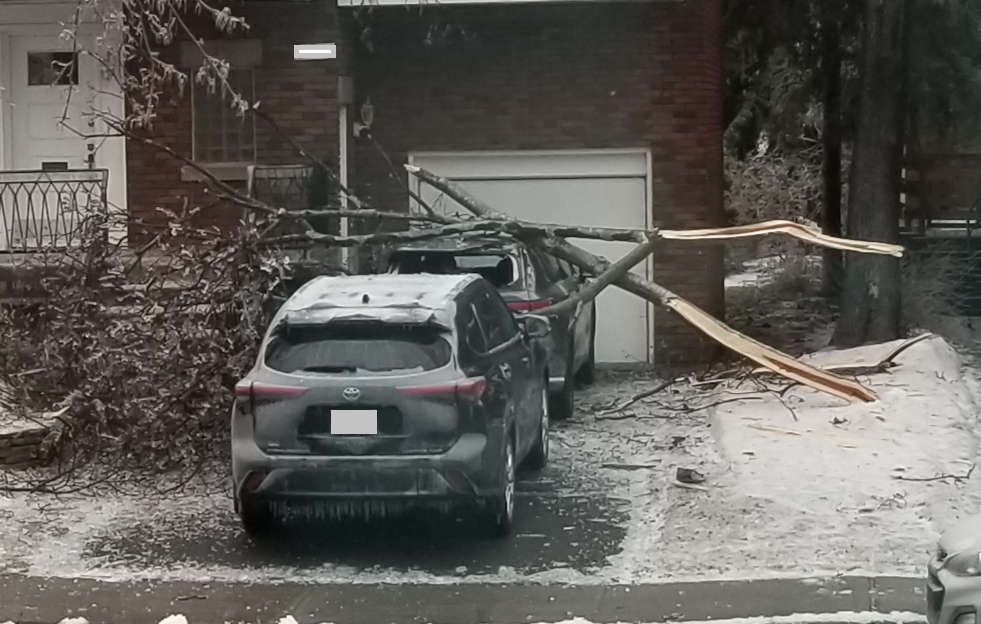 Le verglas a fortement endommagé les arbres, nombreux et vieillissants à Ahuntsic-Cartierville, causant des bris et des chutes de branches, avec les conséquences que l’on connaît: fils électriques et transformateurs cassés causant des pannes de courant, rues et terrains jonchés de débris, feux de circulation éteints, personnes blessées, maisons et voitures endommagées, écoles, bibliothèques et commerces fermés…